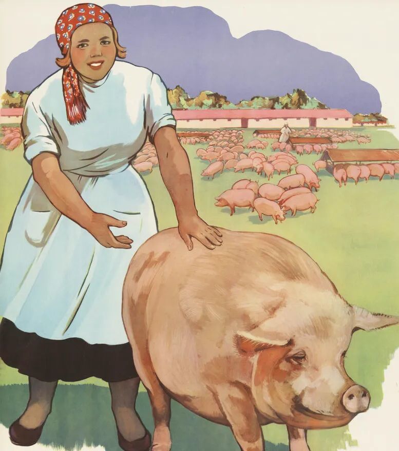 而且相对于牛羊等牲畜,猪具有饲养周期短、产肉率高、附加值丰富等优势。猪皮可用于提炼明胶,猪鬃、猪骨也有其工业价值,对于致力于用工业化驱动国家机器运转的苏联来说,猪是最具有效率的家畜。